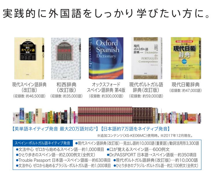 (使用温度25℃の場合) 付属品 タッチペン1本、単3形アルカリ乾電池2本 特徴 ■スペイン語・ポルトガル語の習得に 学習から実務まで対応。